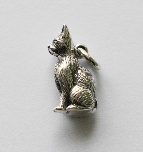 This is a listing for 925 Sterling Silver 3D Cat Charm Dimensions: 14.8 x5.5mm Thickness: 7.8mm Weight: 2.3g This charm is made from 100% recycled silver.