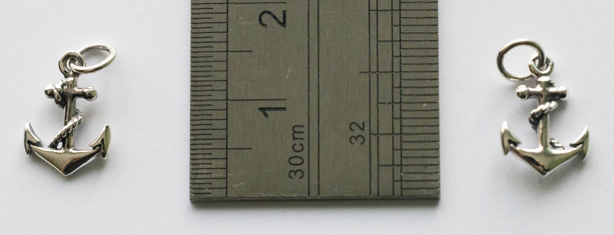 925 Sterling Silver Anchor Charm Dimensions: 12.7 x 9.1mm Thickness: 2.4mm Weight: 0.5g This pendant is made from 100% recycled silver.