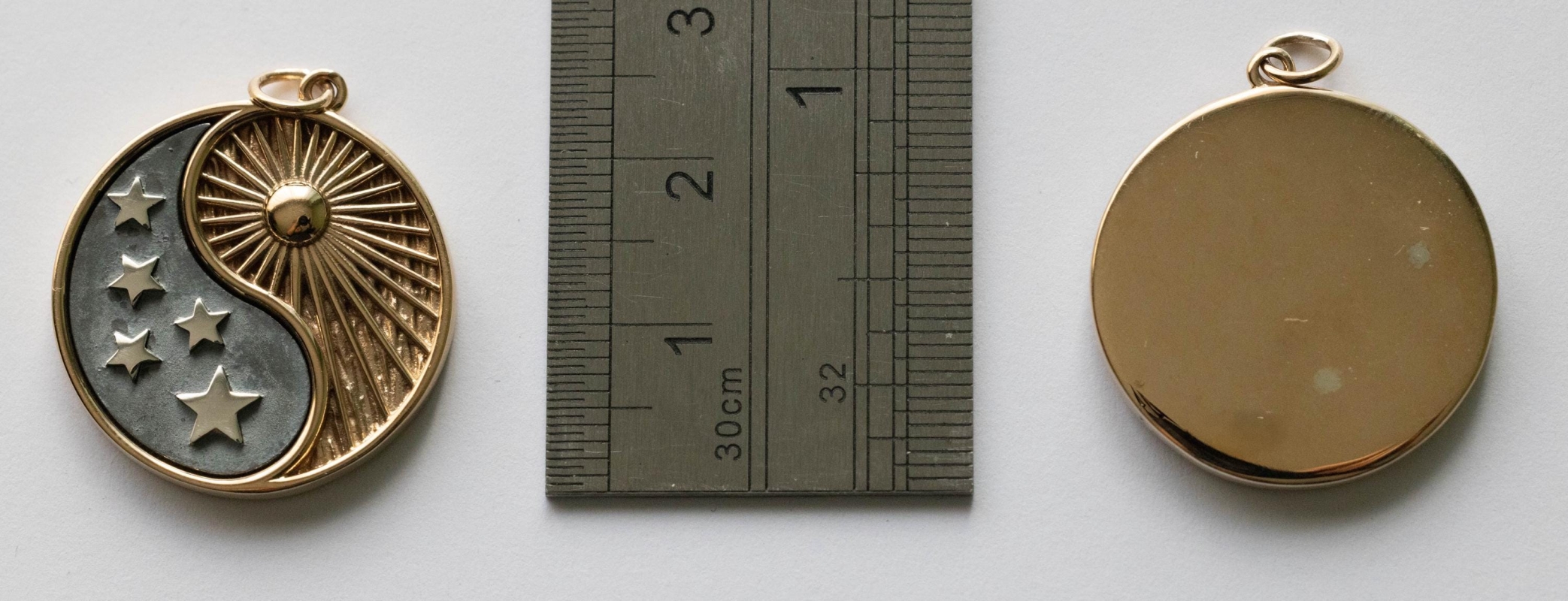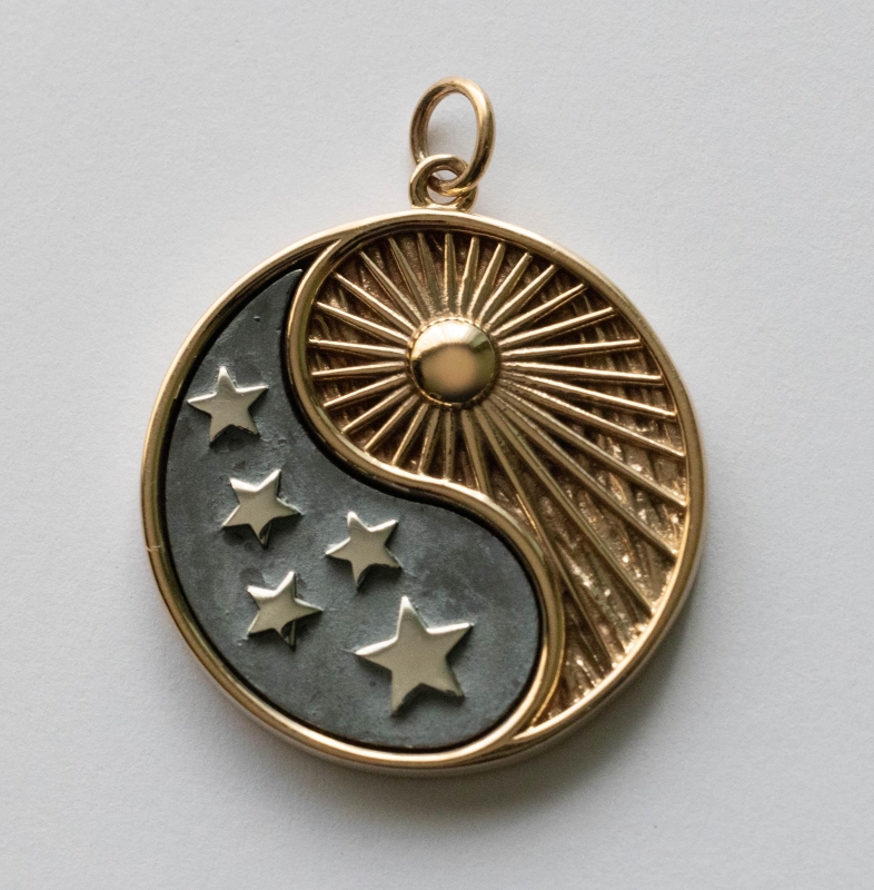 This is a listing for a 925 Sterling Silver and Bronze Yin Yang Sun and Stars Pendant