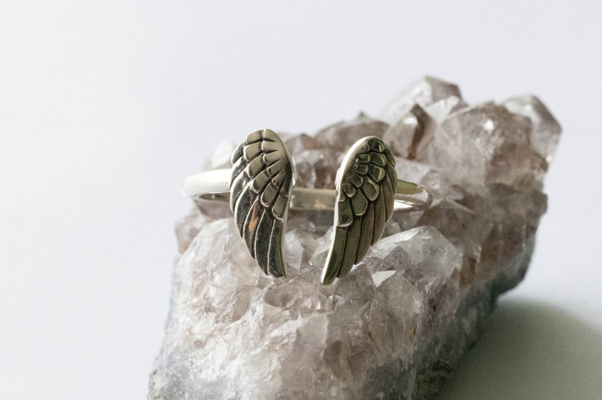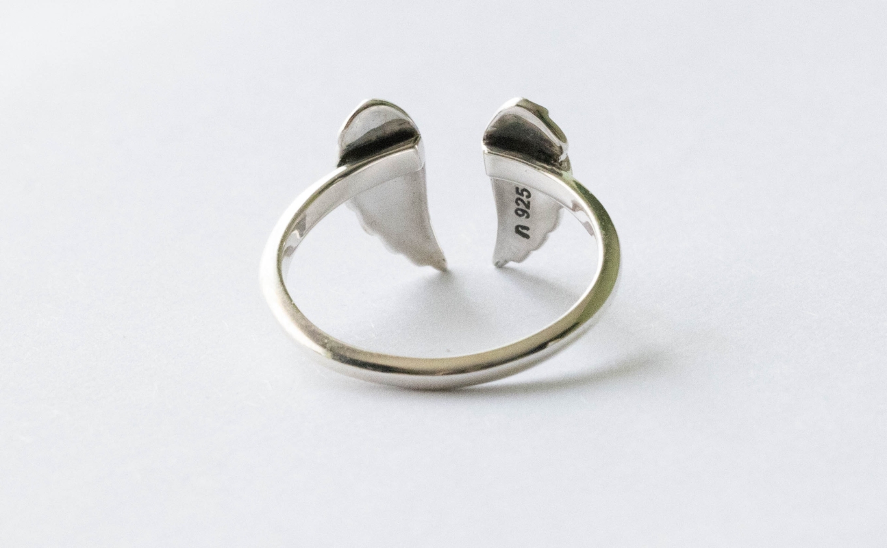This is a listing for 925 Sterling Silver Angel Wing Adjustable Ring This ring is made from 100% recycled silver.