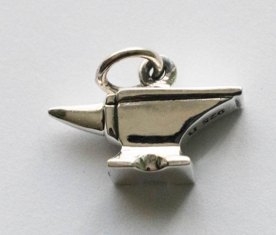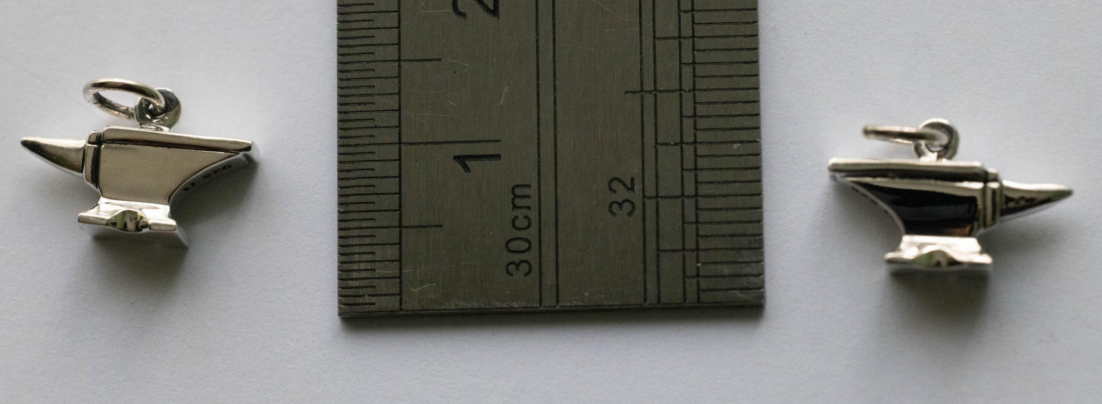 This is a listing for a 925 Sterling Silver Anvil Charm Dimensions: 9.2 x 14.2mm Thickness: 3.9mm Weight: 1.3g This charm is made from 100% recycled silver.