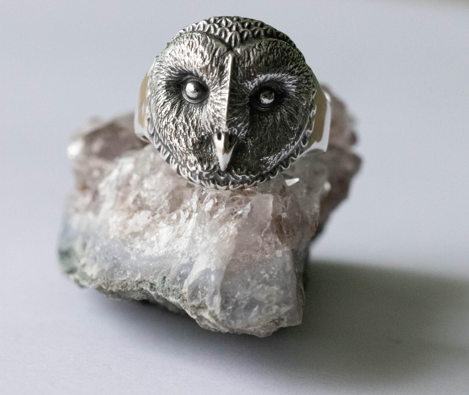 This is a listing for 925 Sterling Silver Barn Owl Ring
