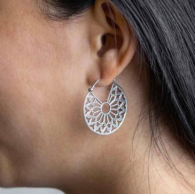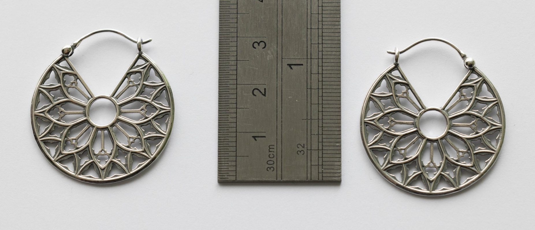 This is a listing for 925 Sterling Cathedral Rose Window Hoop Earrings ( 1 pair )