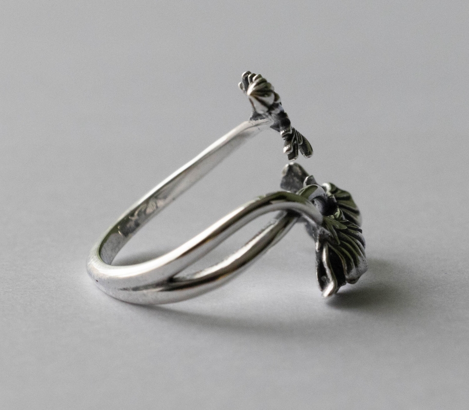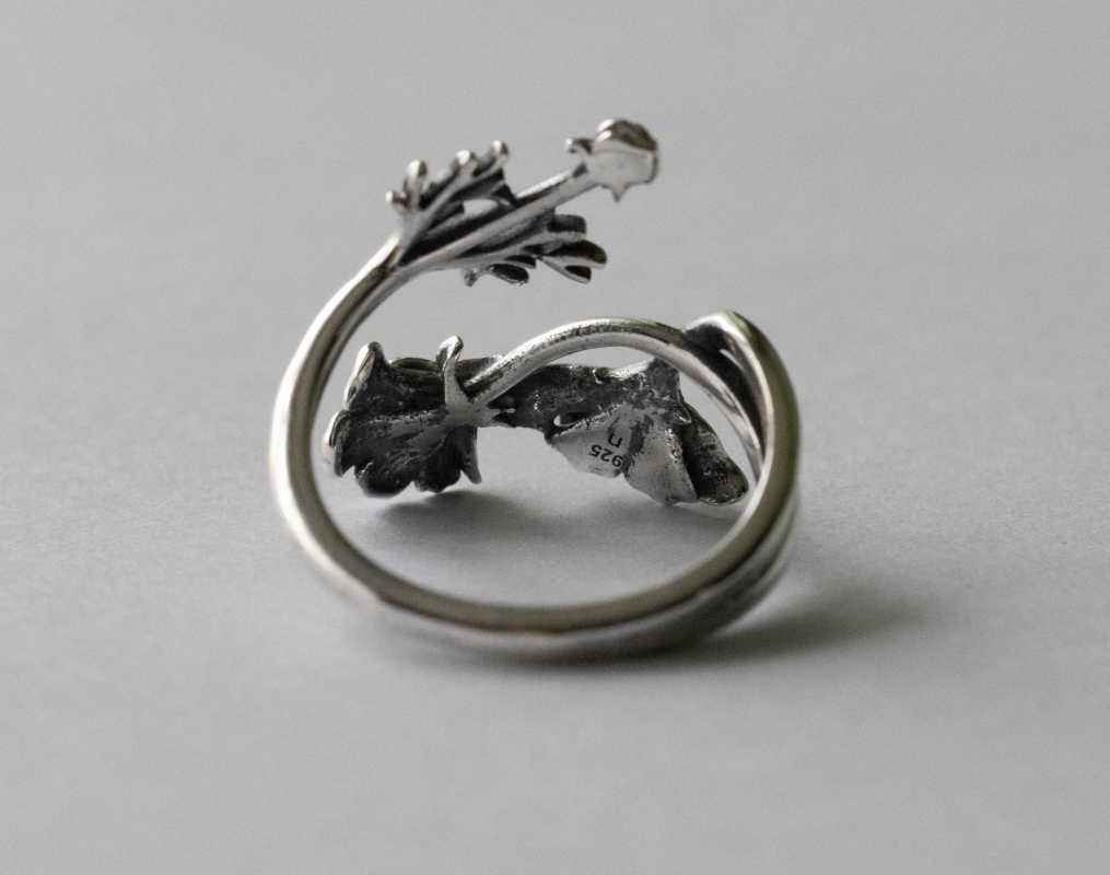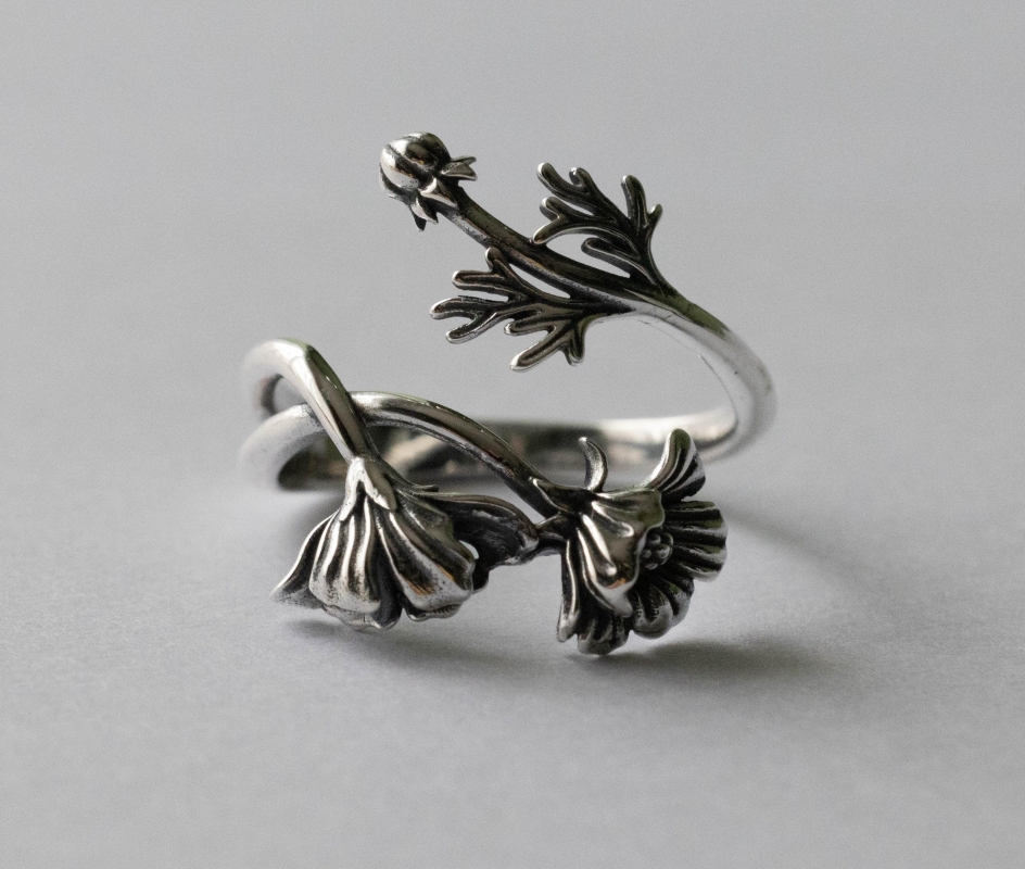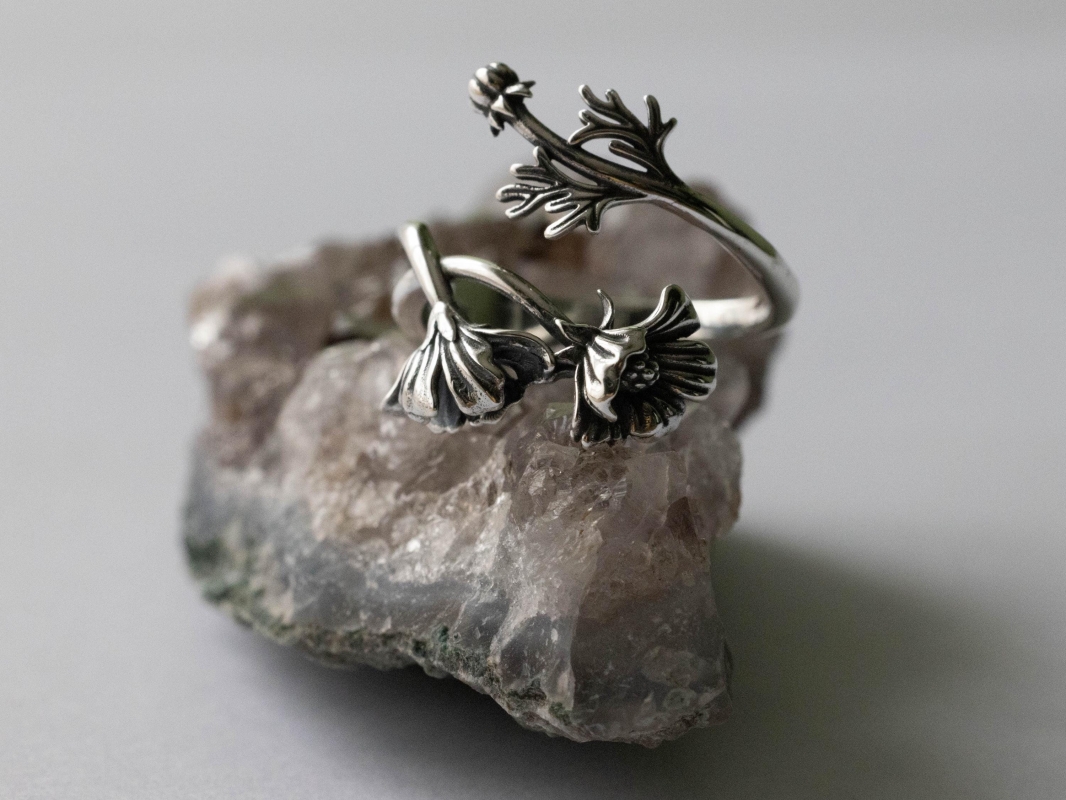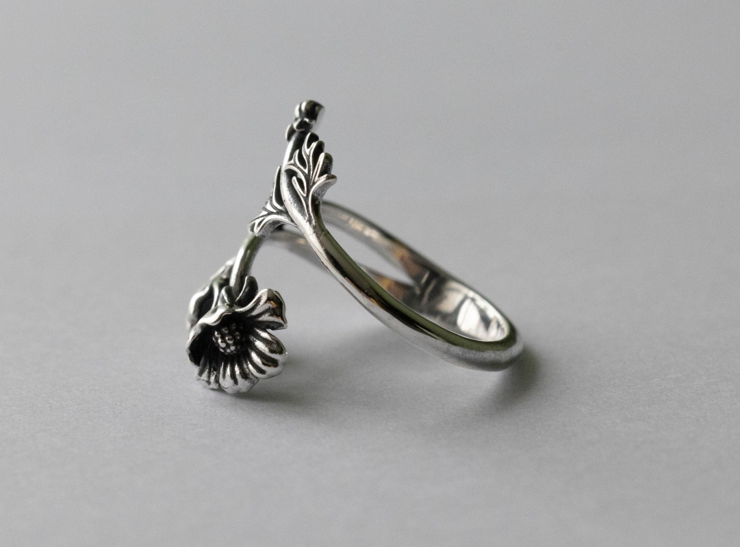 925 Sterling Silver Cosmo October Birth Flower Adjustable Ring