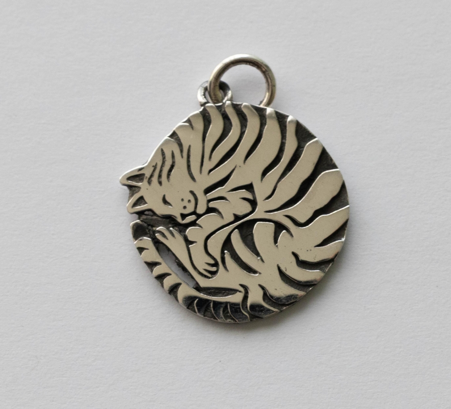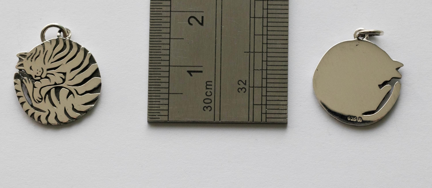This is a listing for 925 Sterling Silver Curled Cat Charm Dimensions: 17.7 x 15.4mm Thickness: 0.8mm Weight: 1.4g This charm is made from 100% recycled silver.