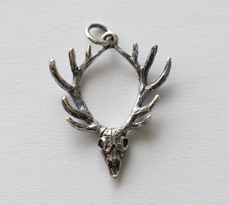 925 Sterling Silver Deer Skull with Antlers Pendant