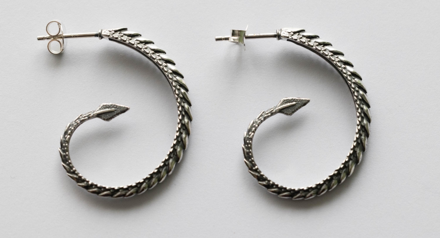 This is a listing for 925 Sterling Dragon Tail Hoop Post Earrings ( 1 pair )