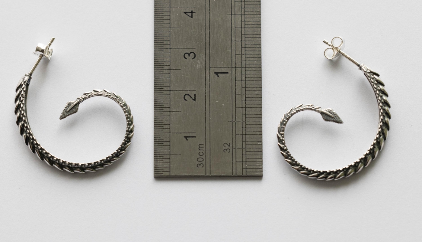 925 Sterling Silver Dragon Tail Hoop Post Earrings ( 1 pair)