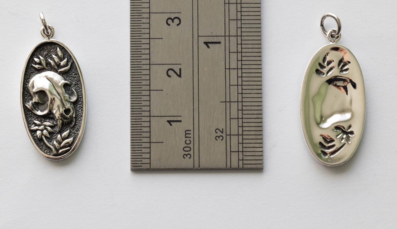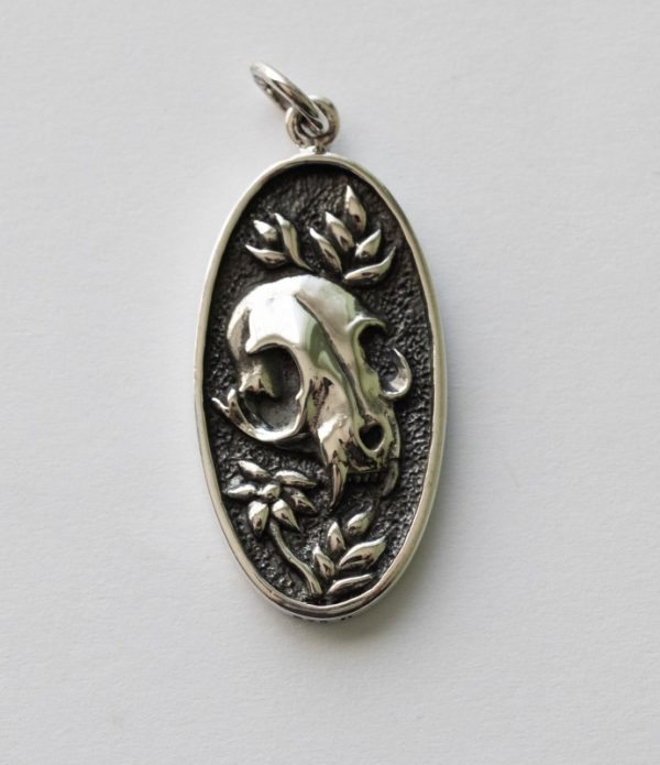 This is a listing for 925 Sterling Silver Flower and Cat Skull Pendant