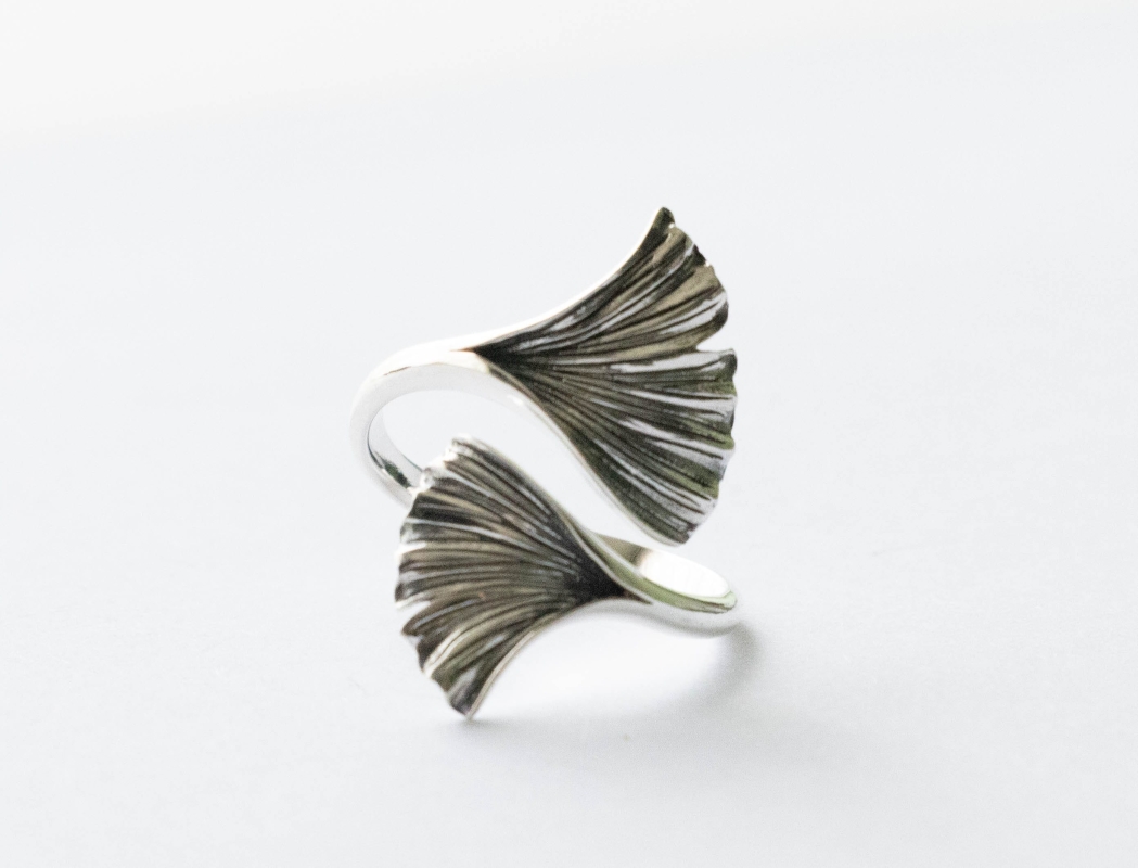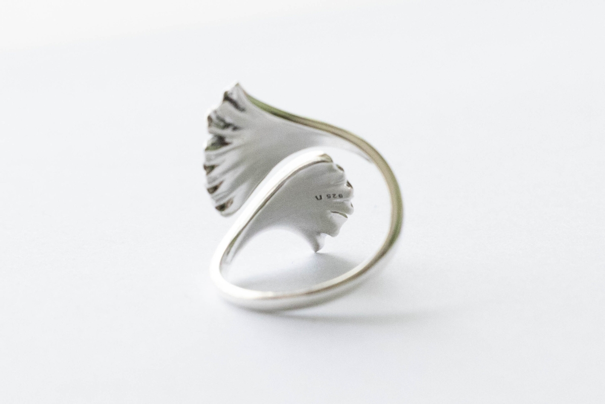 This is a listing for 925 Sterling Silver Ginkgo Leaf Adjustable Ring This ring is made from 100% recycled silver. The adjustable ring sizing starts at size 7, making it ideal for sizes 6-8. As with all adjustable rings, we suggest adjusting this ring to the desired size and then leaving it alone