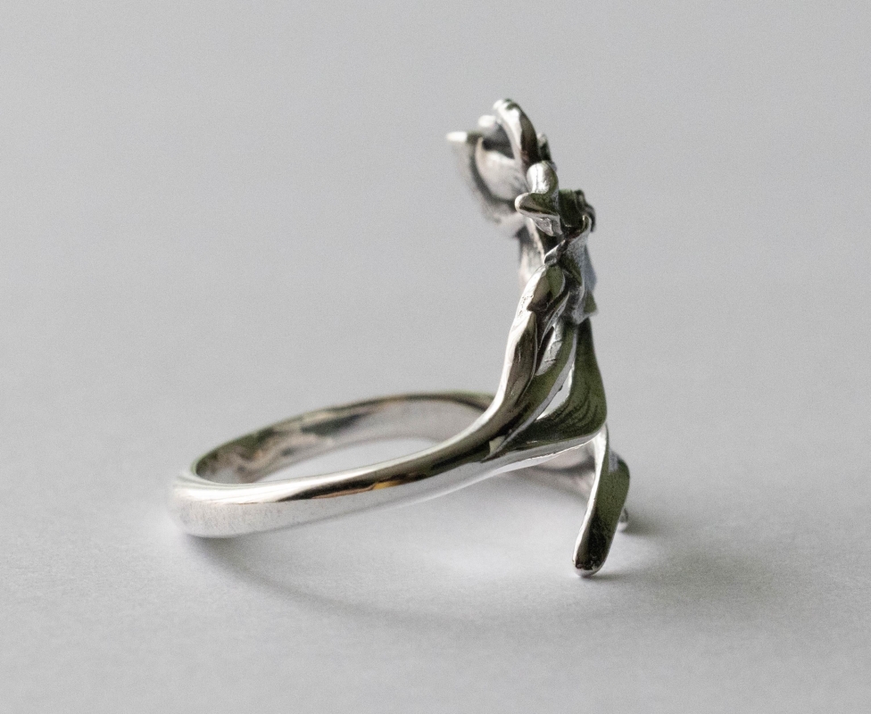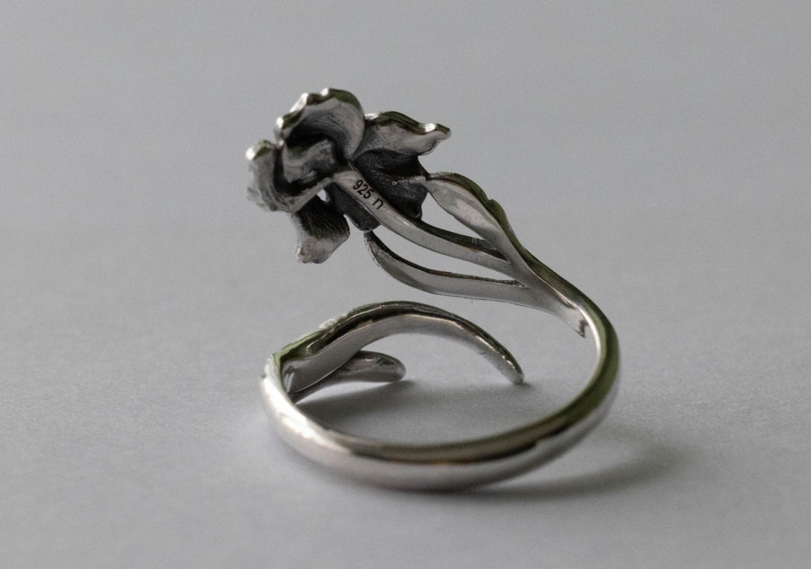 925 Sterling Silver Iris February Birth Flower Adjustable Ring