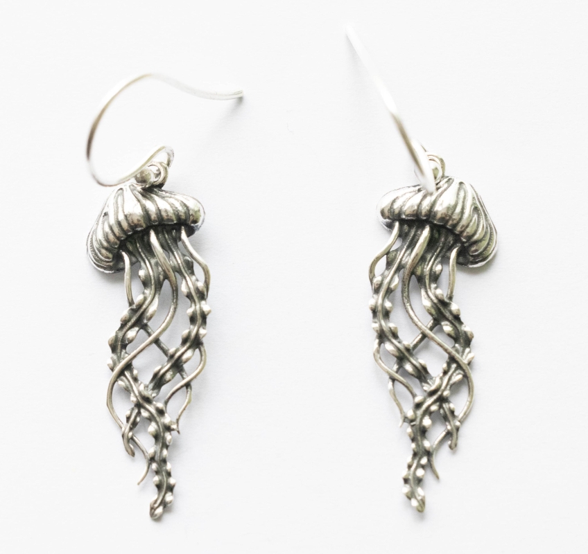 925 Sterling Silver Jellyfish Dangle Earrings (1 Pair)