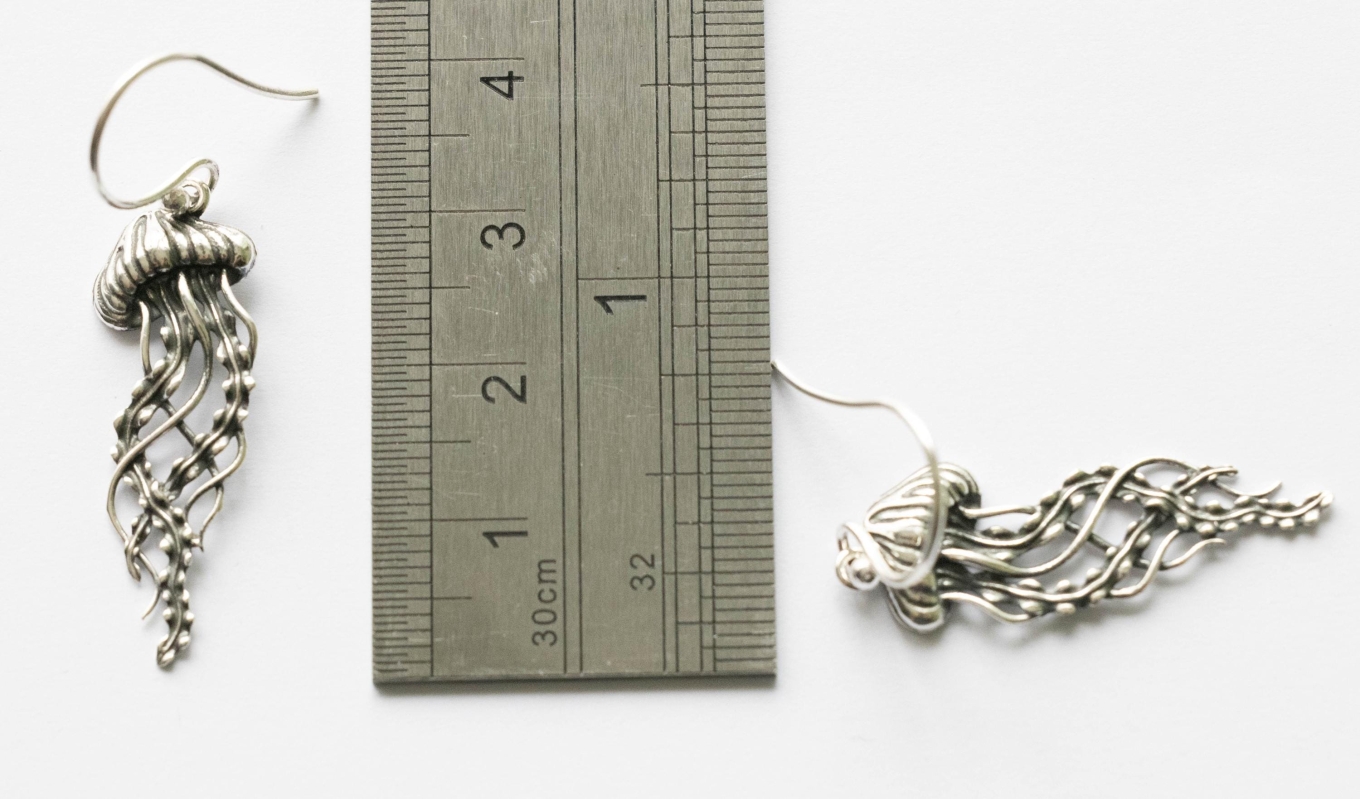 925 Sterling Silver Jellyfish Dangle Earrings ( 1 pair )