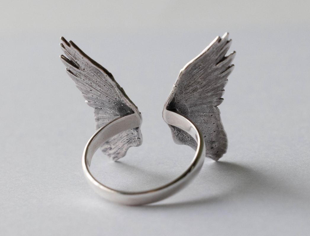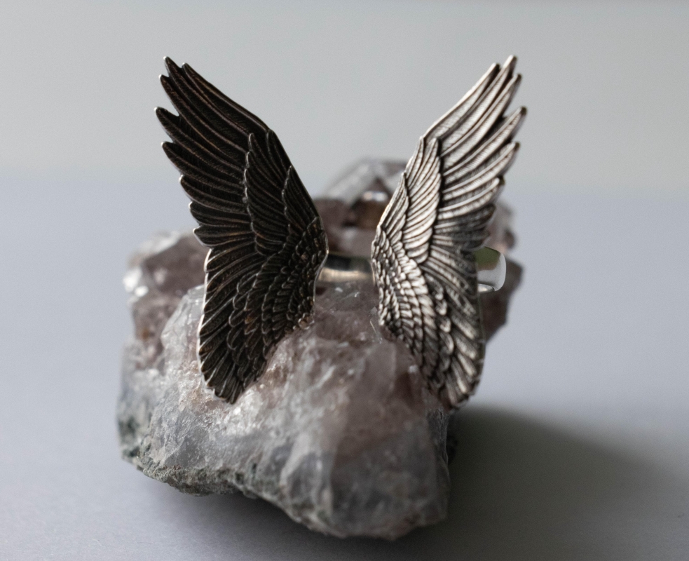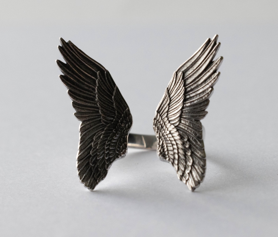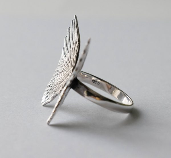 This is a listing for 925 Sterling Silver Large Angel Wings Adjustable Ring