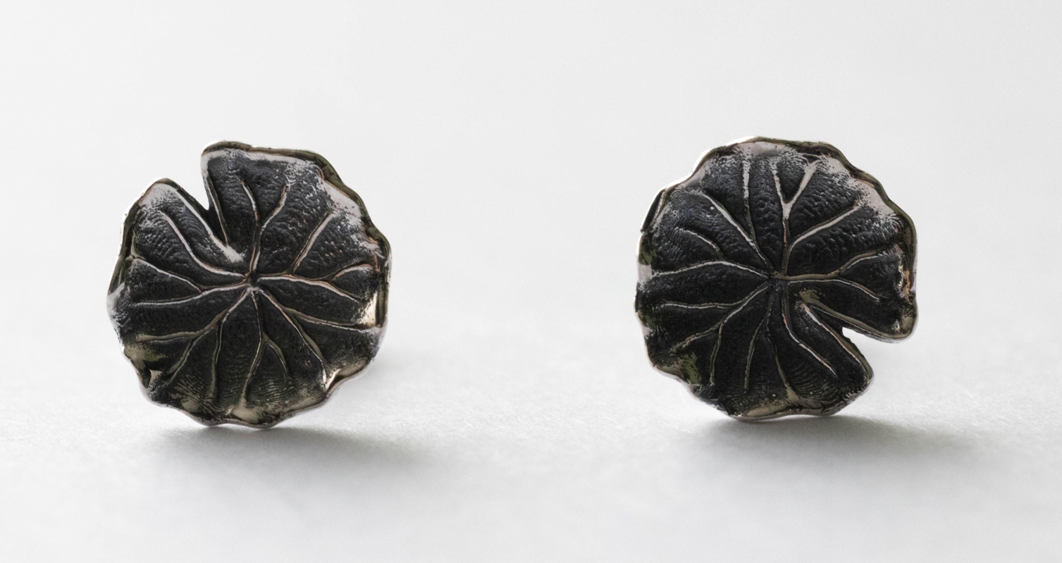 925 Sterling Silver Lily Pad Post Earrings (1 Pair)