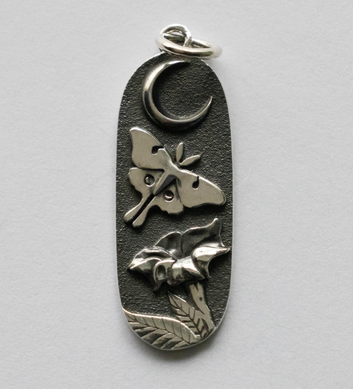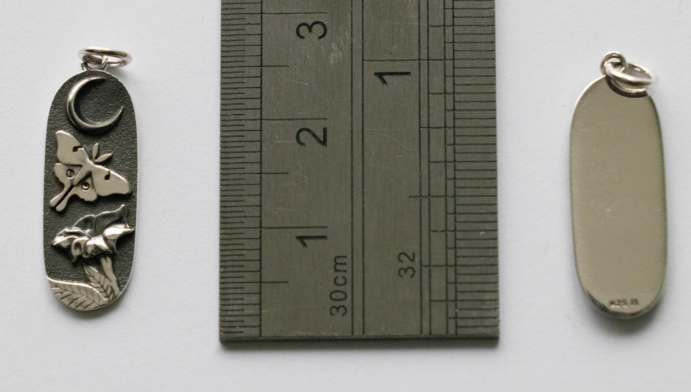 This is a listing for a 925 Sterling Silver Luna Moth and Moonflower Charm