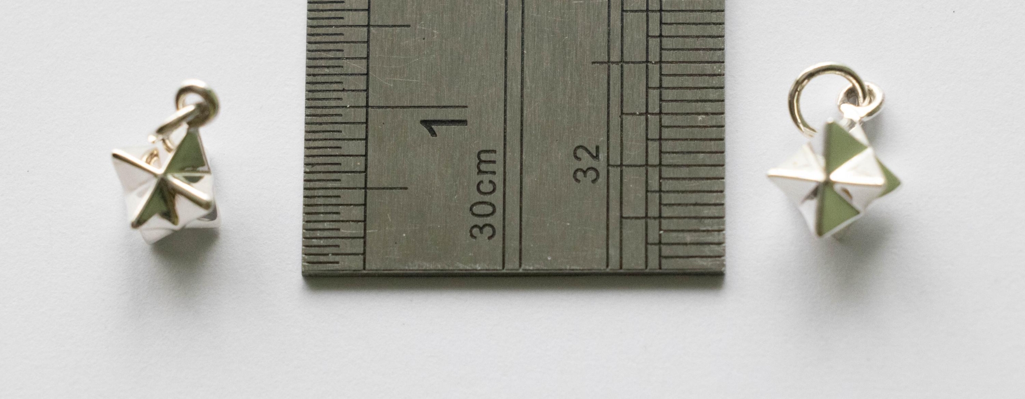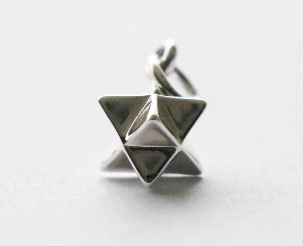 This is a listing for 925 Sterling Silver Merkabah Charm Dimensions: 11.6 x 6.8mm Thickness: 6.1mm Weight: 1.0g This charm is made from 100% recycled silver.