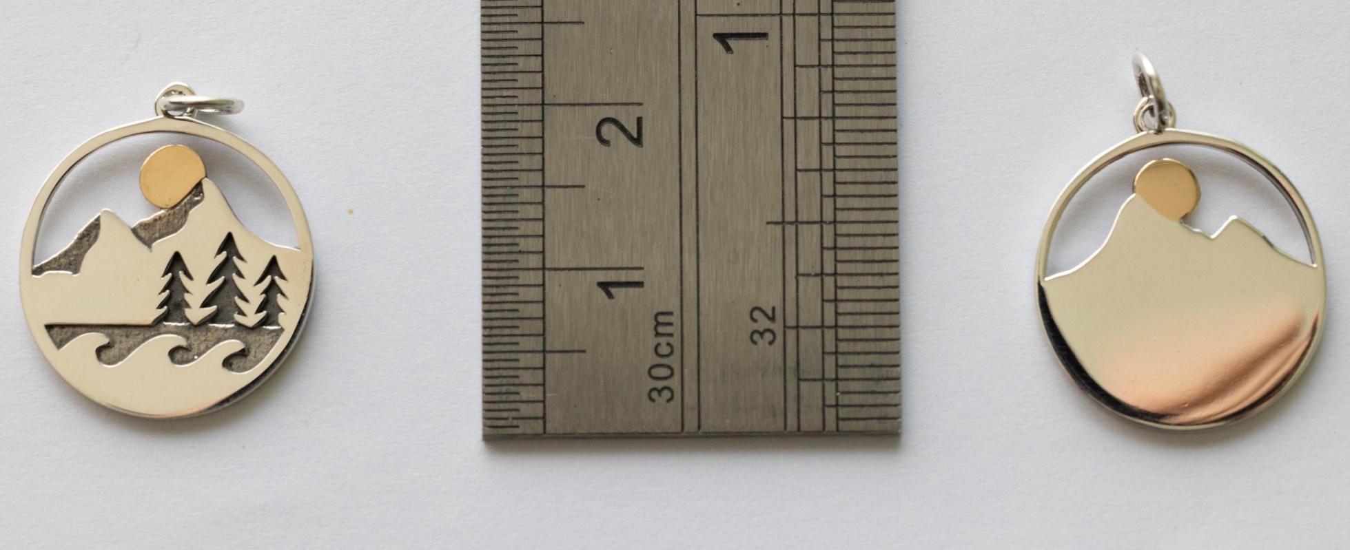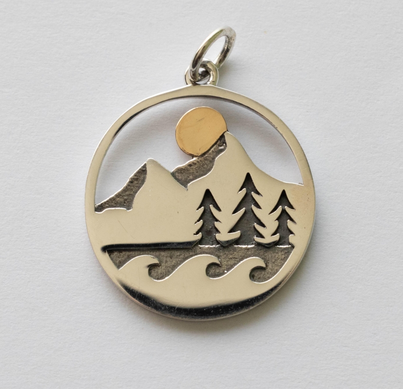 925 Sterling Silver Mountain Trees and Waves Pendant