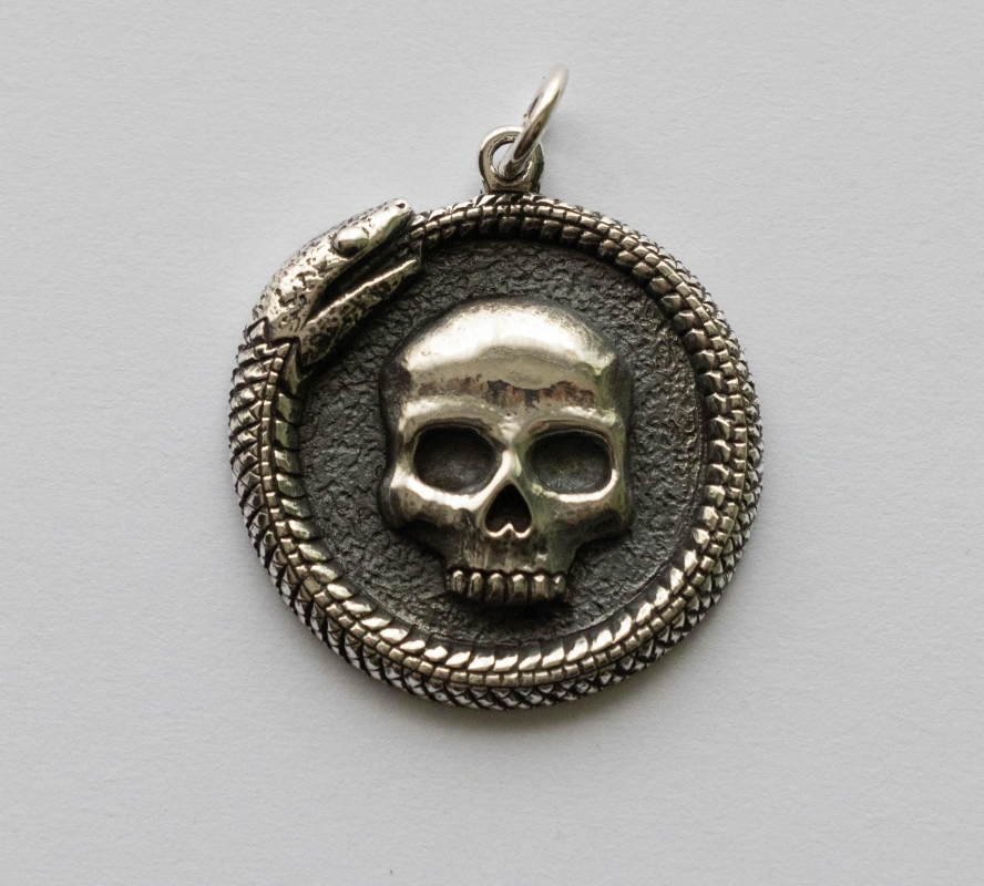 This is a listing for 925 Sterling Silver Ouroboros Snake with Skull Charm