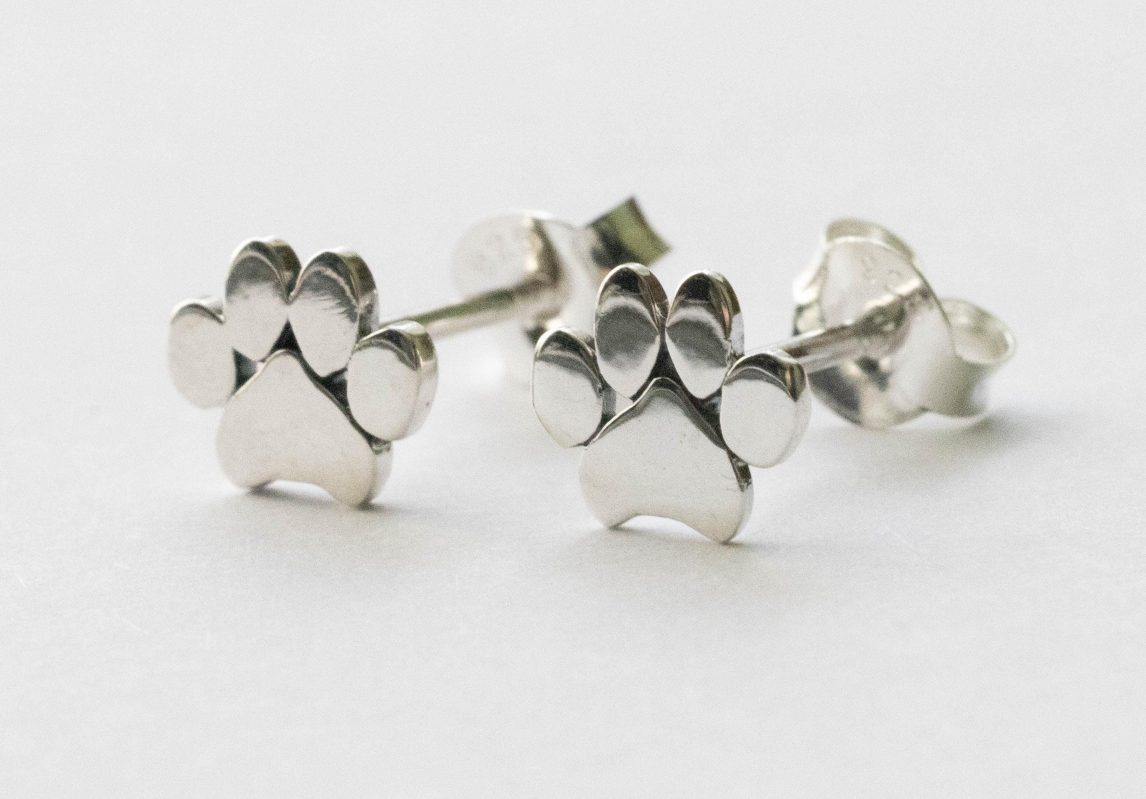 925 Sterling Silver Paw Print Post Earrings ( 1 pair)