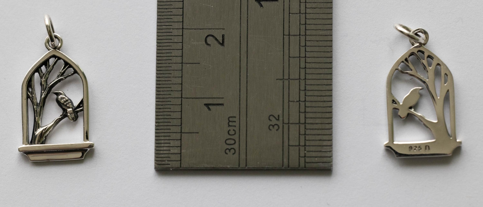 925 Sterling Silver Raven in Window Charm Dimensions: 18.4 x 10.8mm Thickness: 1.3mm Weight: 0.7g This charm is made from 100% recycled silver.