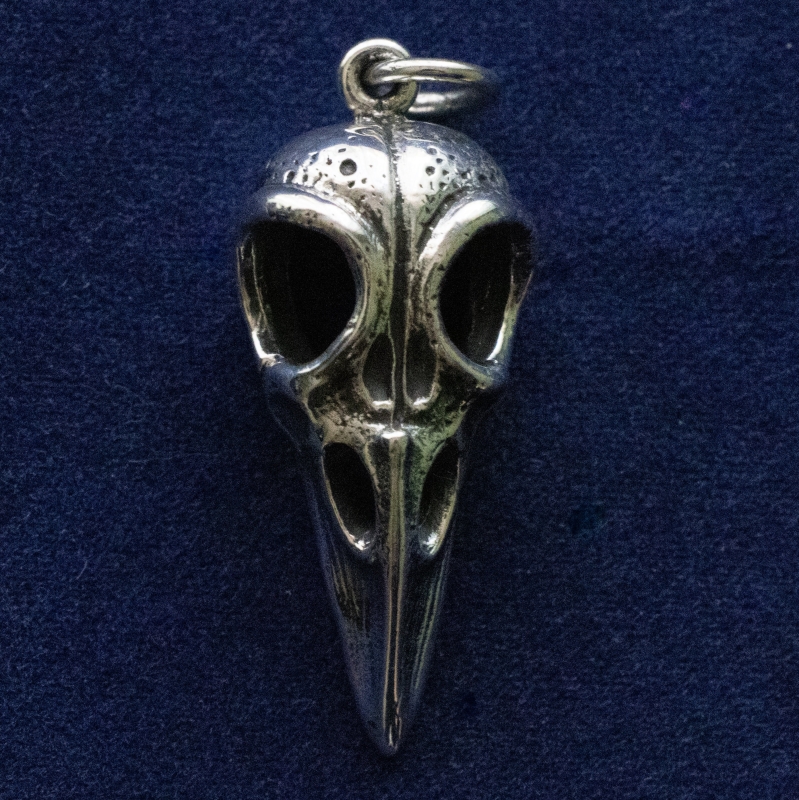 This is a listing for 925 Sterling Silver Raven Skull Charm