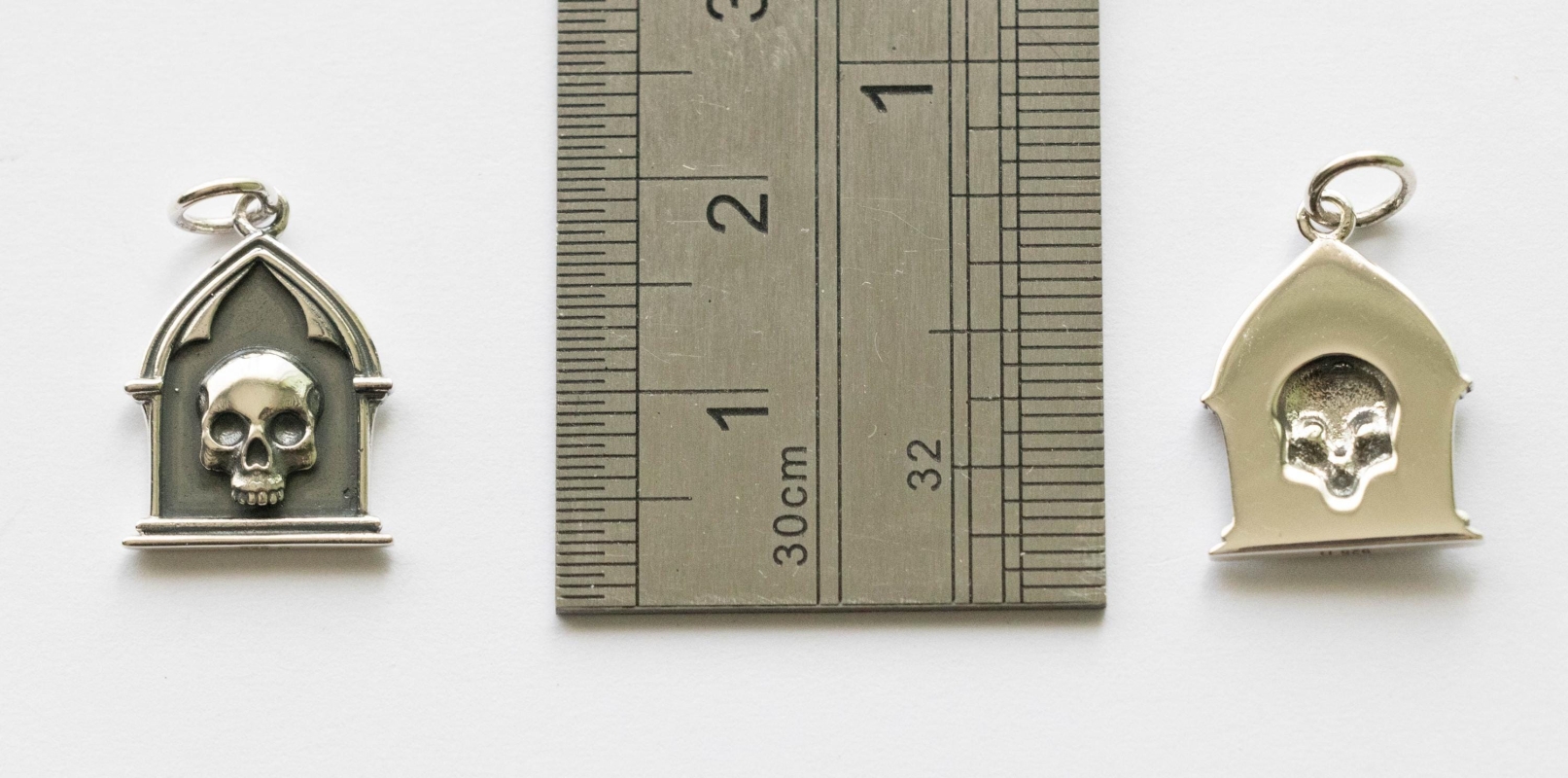This is a listing for 925 Sterling Silver Reliquary Skull Charm Dimensions: 15 x 12.5mm Thickness: 2.1mm Weight: 1.2g