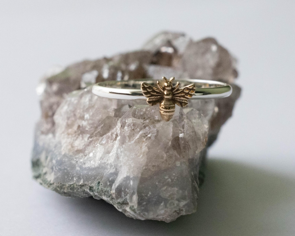 925 Sterling Silver Ring with Tiny Bronze Bee