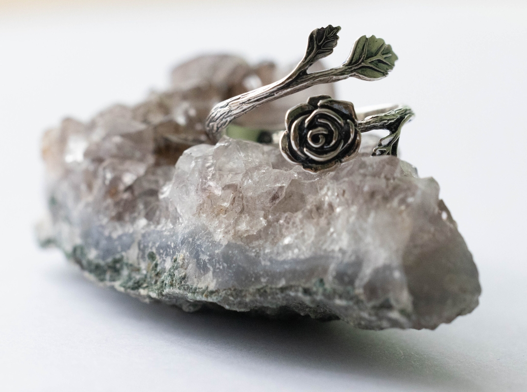 925 Sterling Silver Rose Adjustable Ring The adjustable ring sizing starts at size 7, making it ideal for sizes 6-8. As with all adjustable rings, we suggest adjusting this ring to the desired size and then leaving it alone