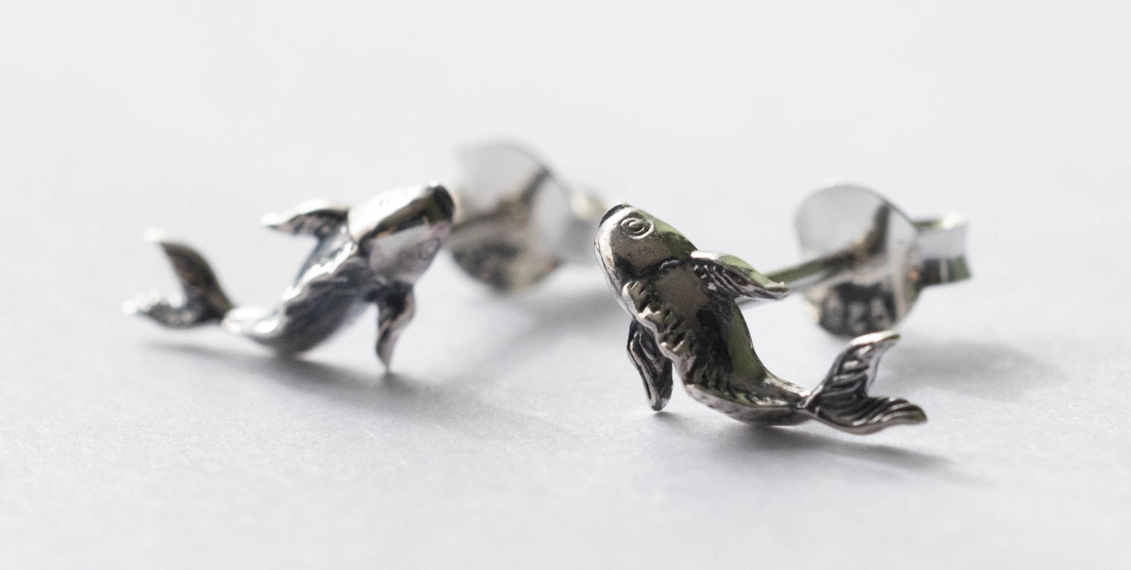 925 Sterling Silver Small Koi Post Earrings (1 Pair)