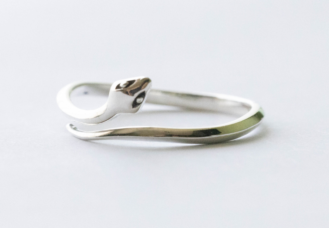 925 Sterling Silver Snake Adjustable Ring The adjustable ring sizing starts at size 7, making it ideal for sizes 6-8. As with all adjustable rings, we suggest adjusting this ring to the desired size and then leaving it alone This ring is made from 100% recycled silver.