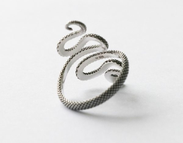 925 Sterling Silver Textured Snake Adjustable Ring