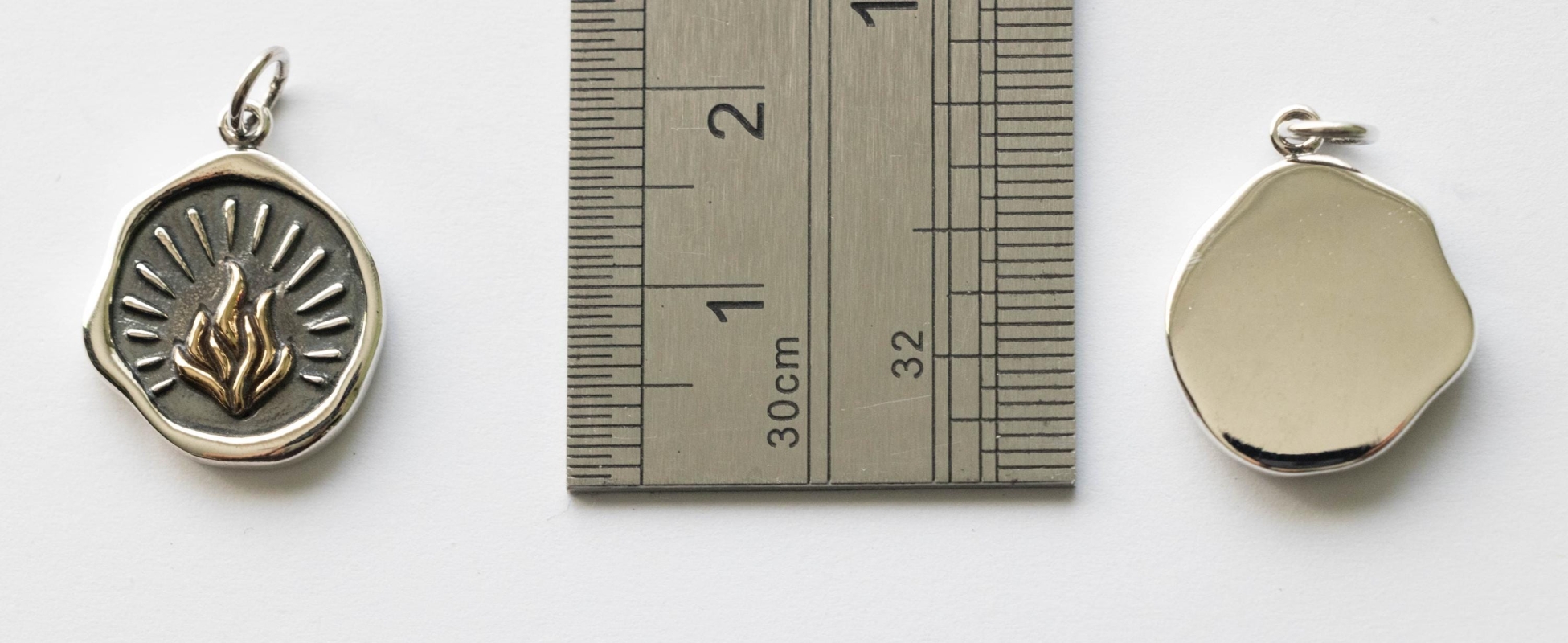 925 Sterling Silver Wax Seal Charm with Bronze Fire Charm