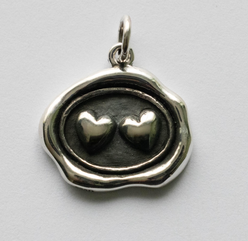 925 Sterling Silver Wax Seal Double Heart Charm