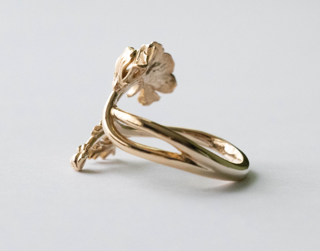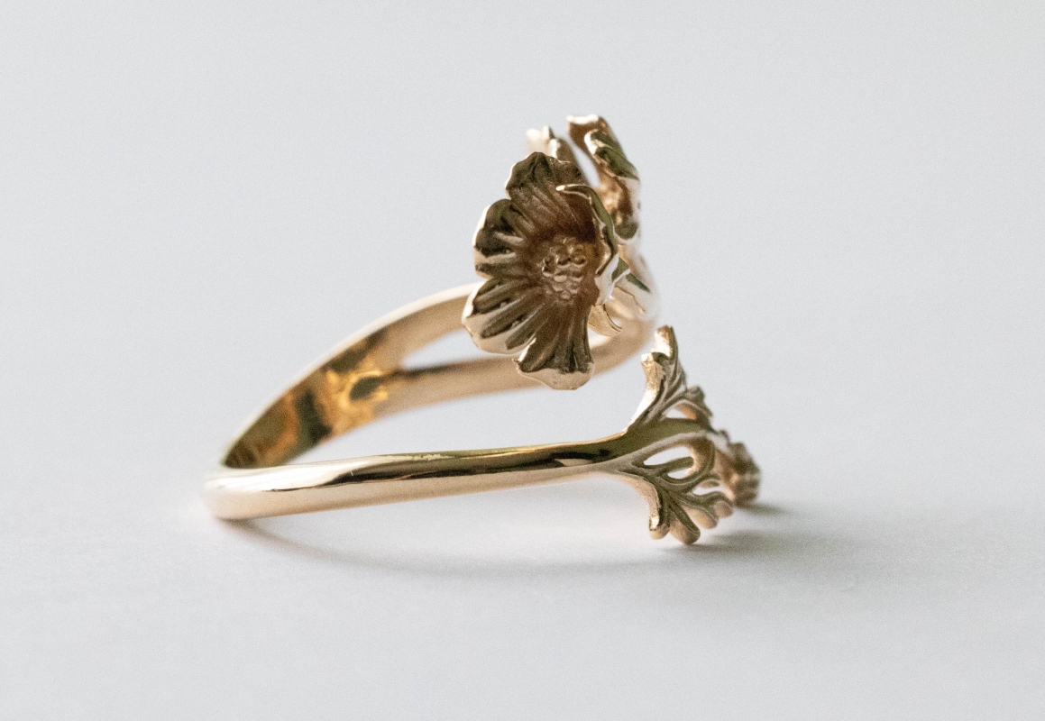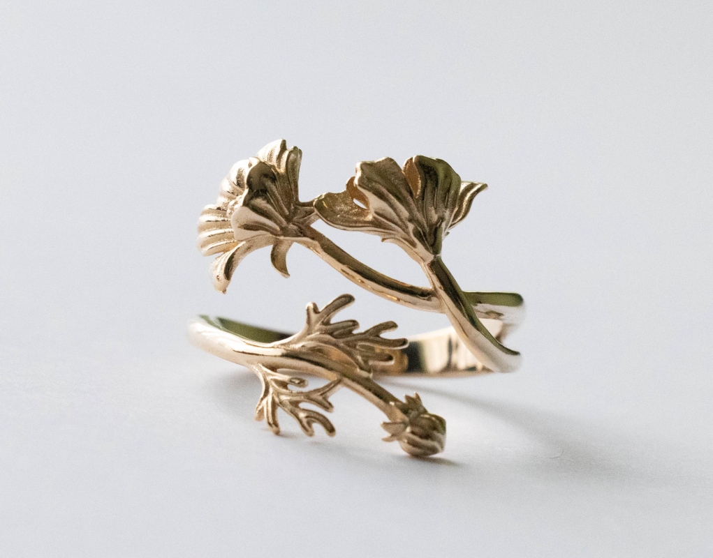 This is a listing for Bronze Adjustable Cosmo Ring – October Birth Flower