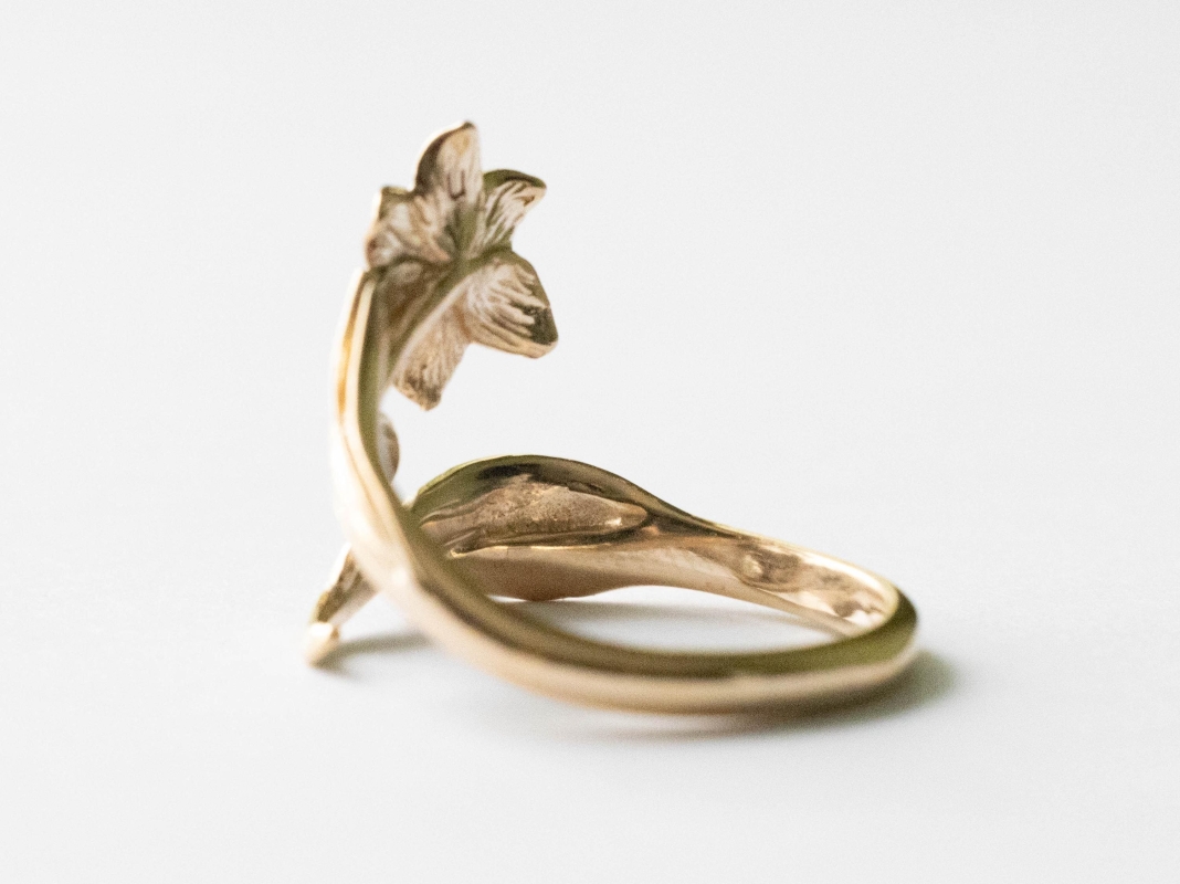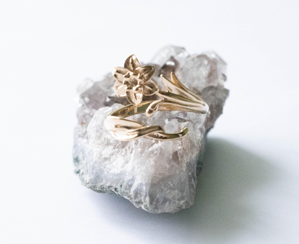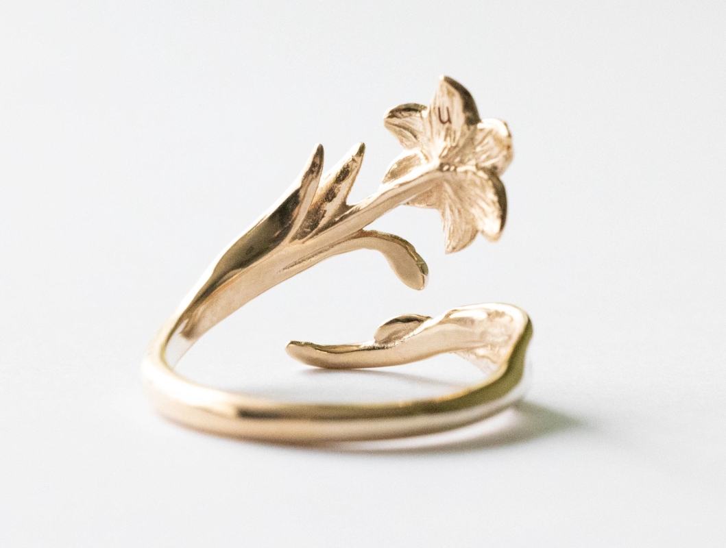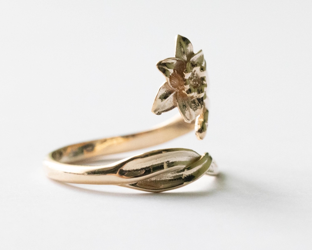 This is a listing for Bronze Adjustable Daffodil Ring – March Birth Flower