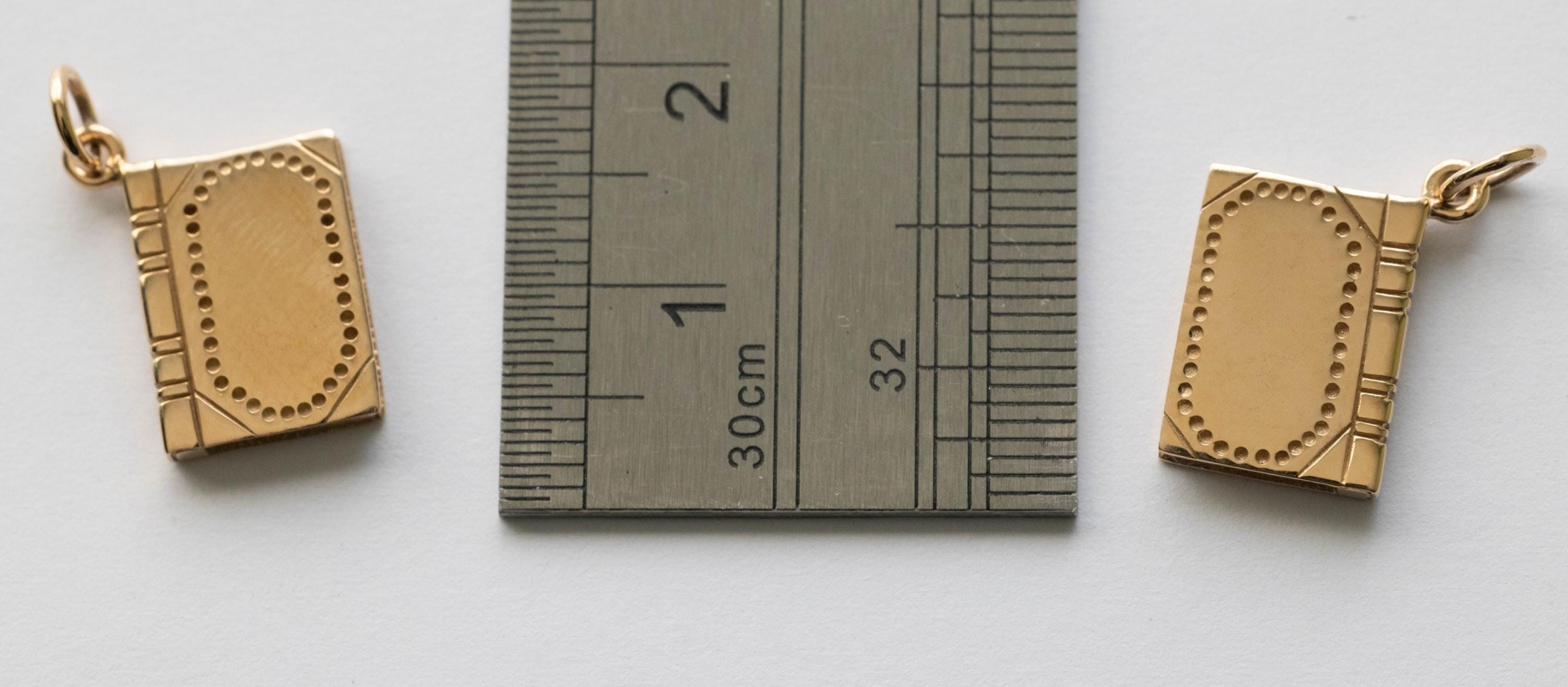This is a listing for Bronze Book Charm Dimensions: 15.6 x 12.1mm Thickness: 2.2mm Weight: 2.2g