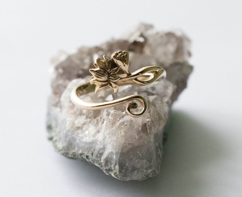 This is a listing for a Bronze Lotus Adjustable Ring The adjustable ring sizing starts at size 7, making it ideal for sizes 6-8. As with all adjustable rings, we suggest adjusting this ring to the desired size and then leaving it alone