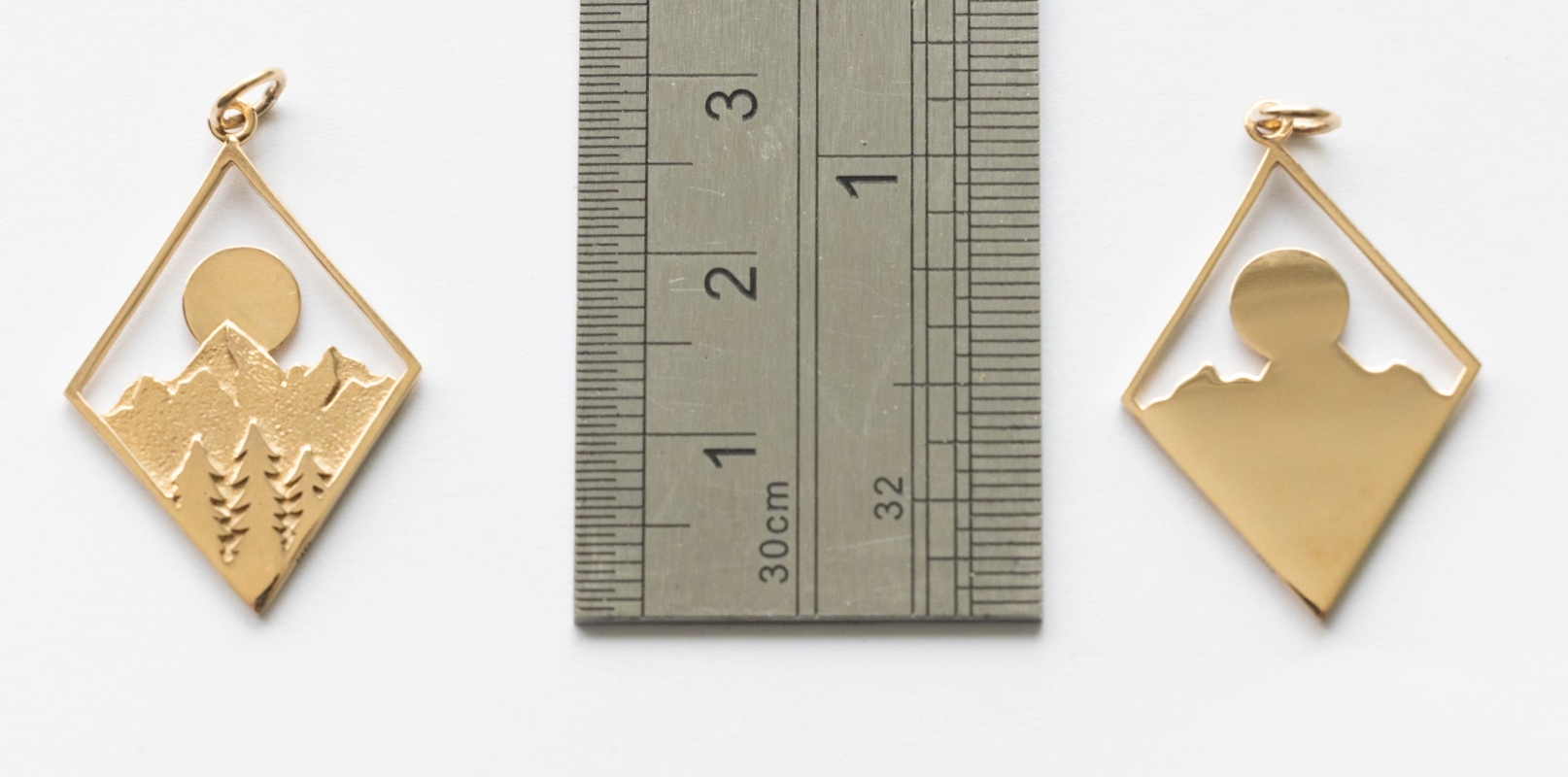 Bronze Mountain in Diamond Frame Charm Dimensions: 28.8 x 19.4mm Thickness: 1.0mm Weight: 1.4g