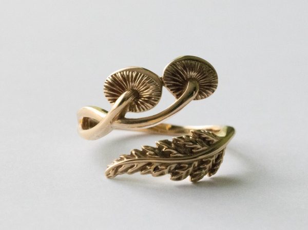 Bronze Mushroom and Fern Bypass Adjustable Ring
