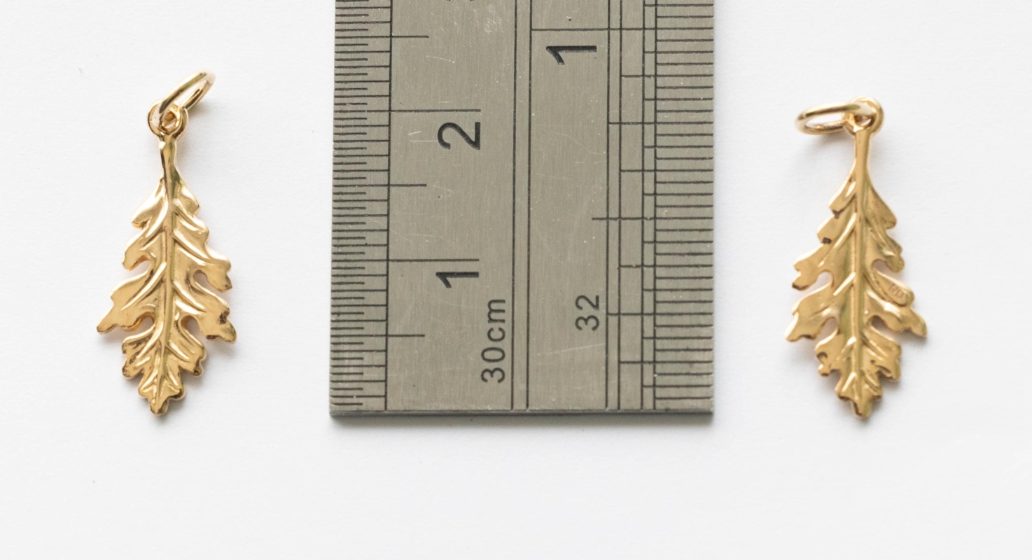 This is a listing for the Bronze Oak Leaf Charm Dimensions: 21.2 x 9.3mm Thickness: 1.0mm Weight: 0.6g