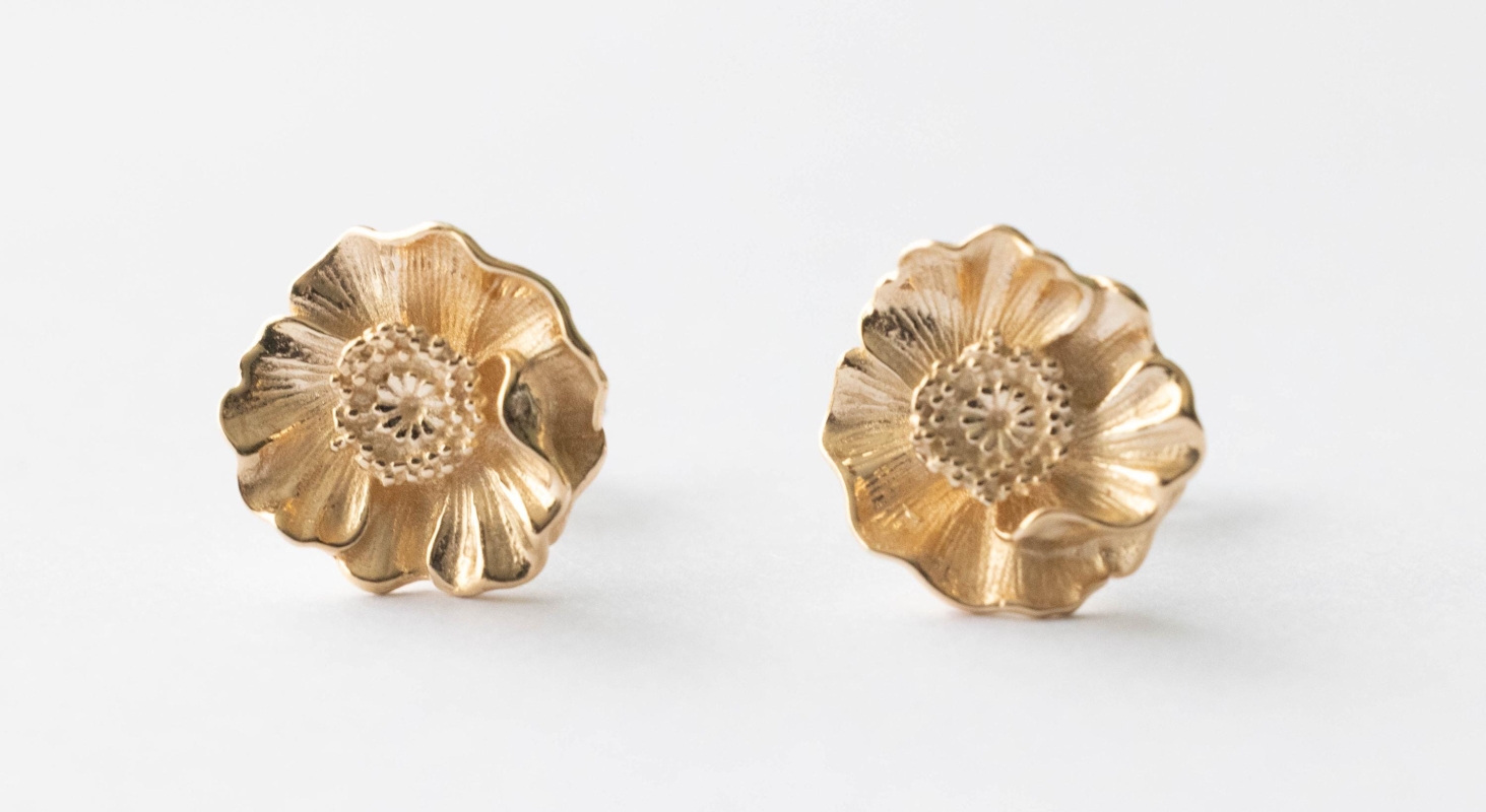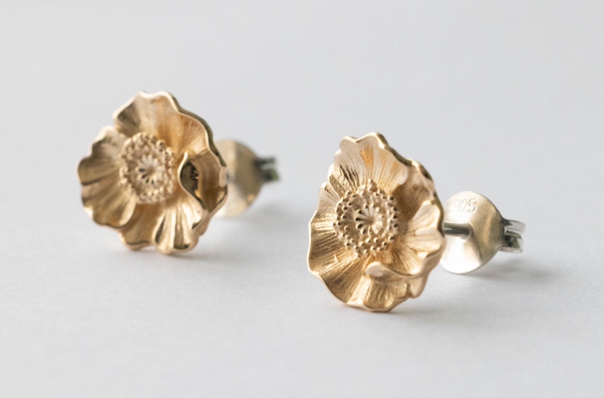 Bronze Poppy Flower Post Earrings (1 pair)