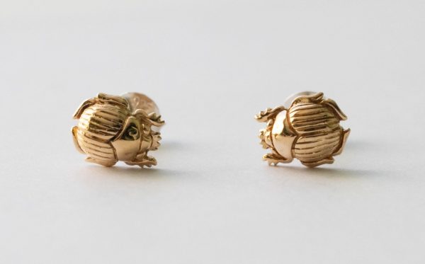 Bronze Scarab Post Earrings (1 pair) Dimensions: 8.2 x 6.6mm Thickness: 2.9mm Weight: 0.6g